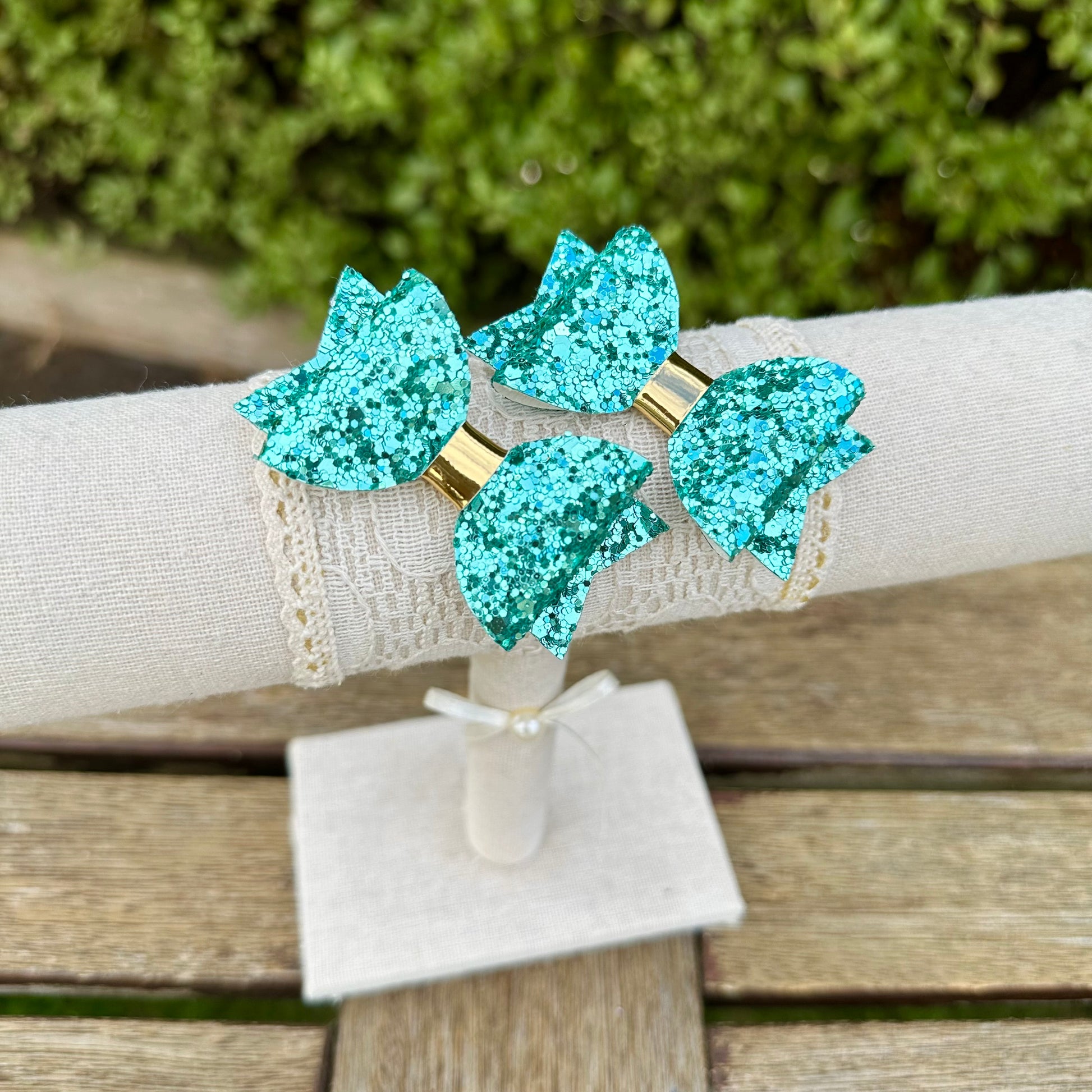 Baby Dolly Classic Glitter Bows// Aquamarine