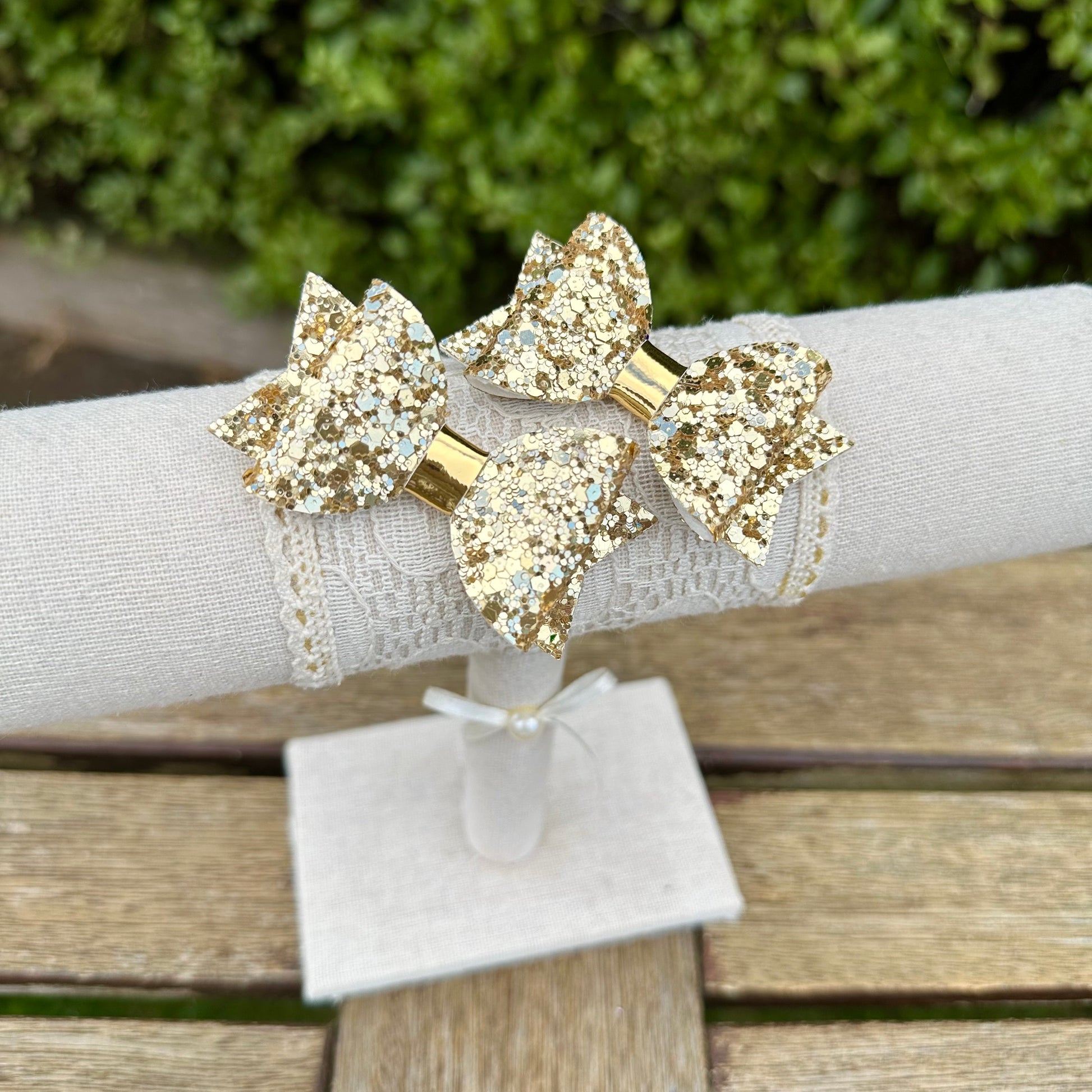 Baby Dolly Classic Glitter Bows// Light Gold