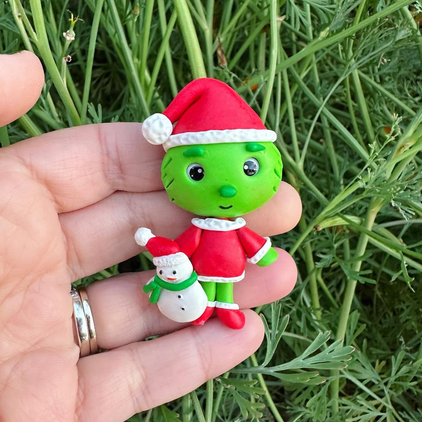 Custom Grinch Snowman Clay Bow