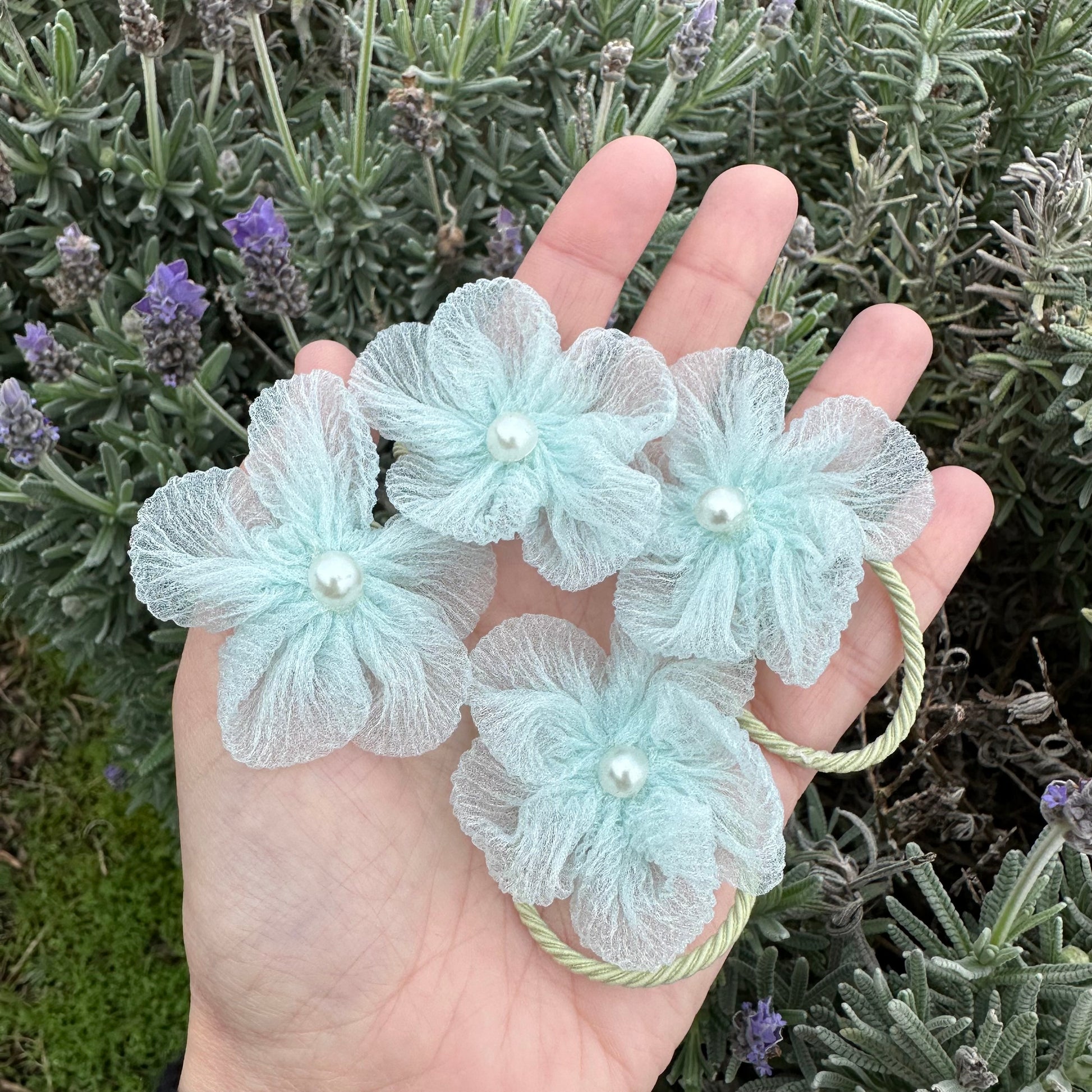 Mint Flower Hair Ties (each)