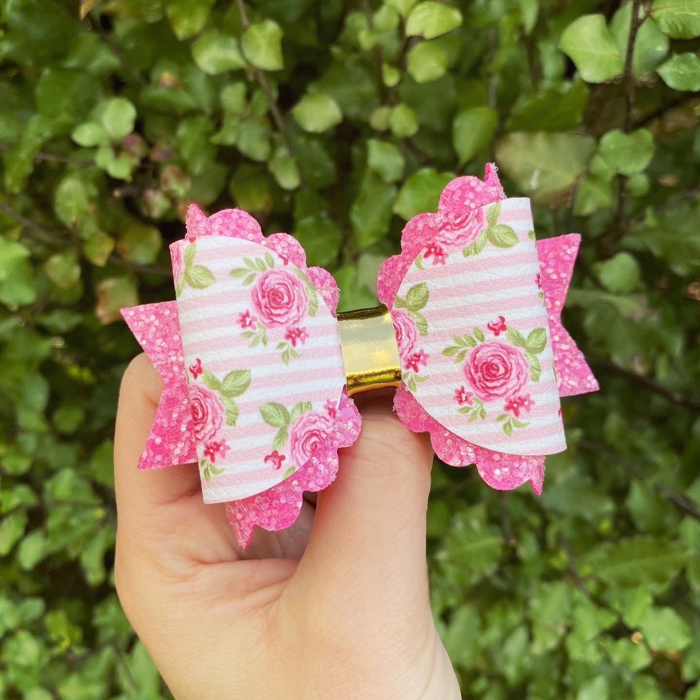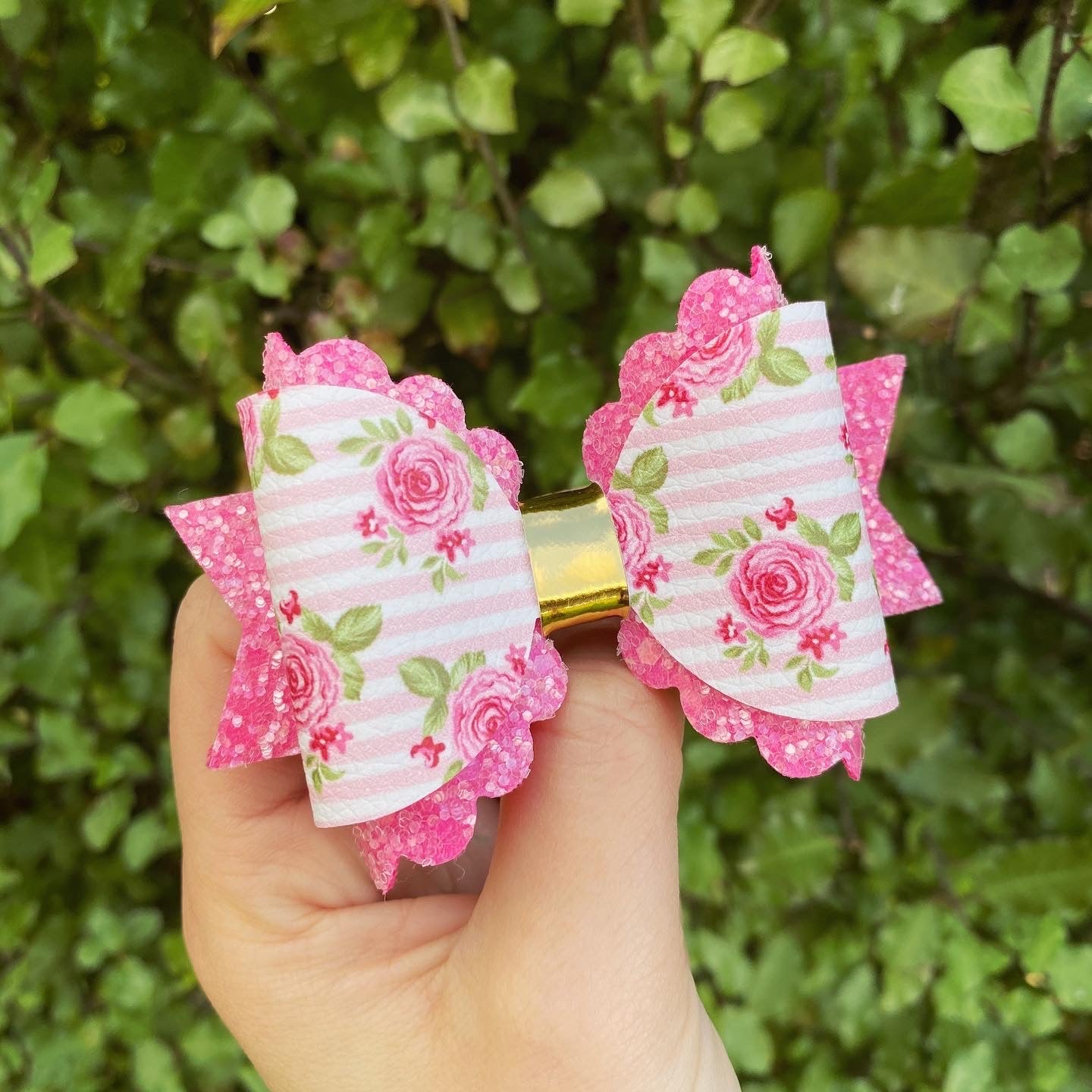 Pink Floral Scalloped bow
