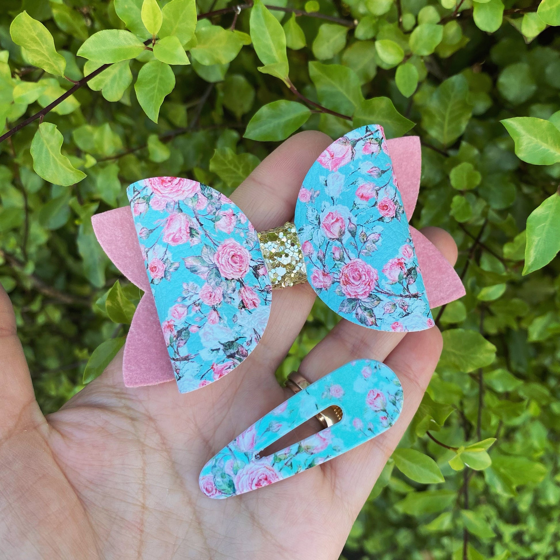 Romantic Roses Bow & Clip Set