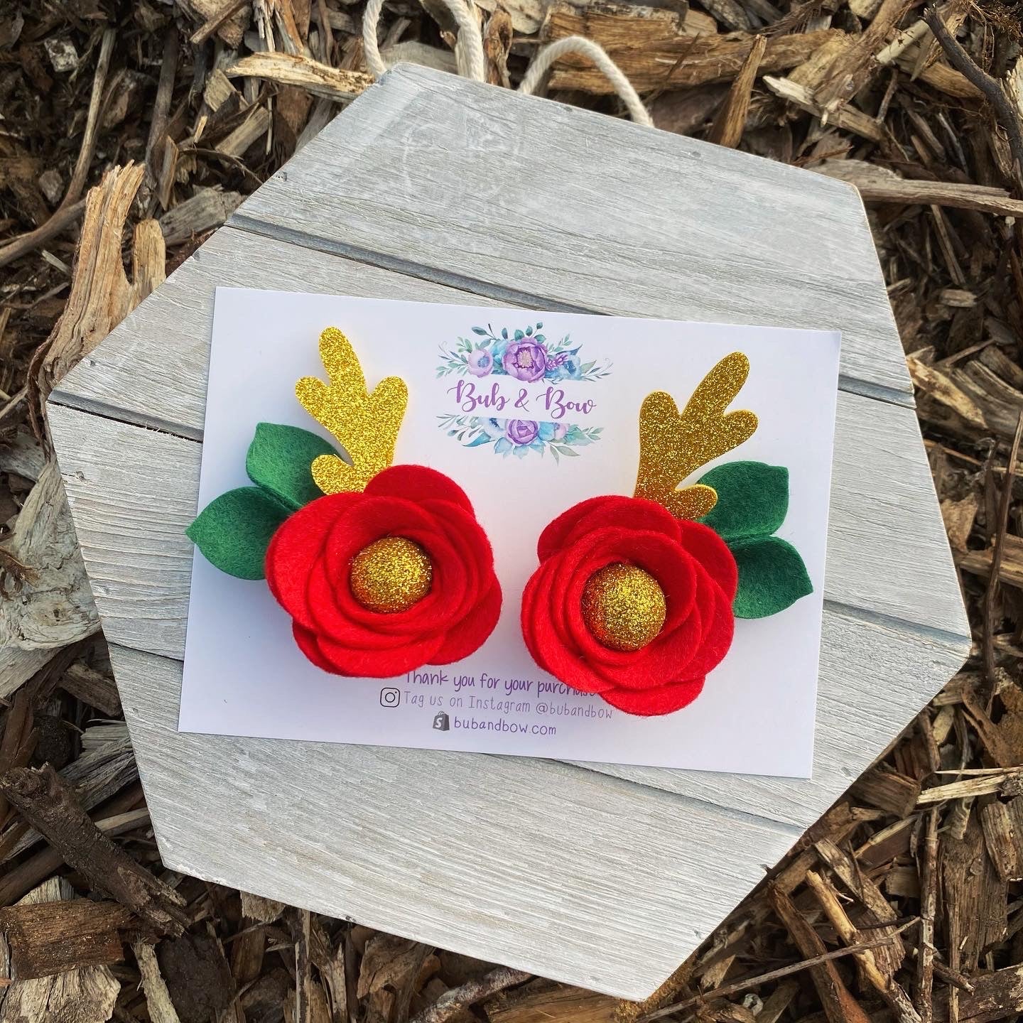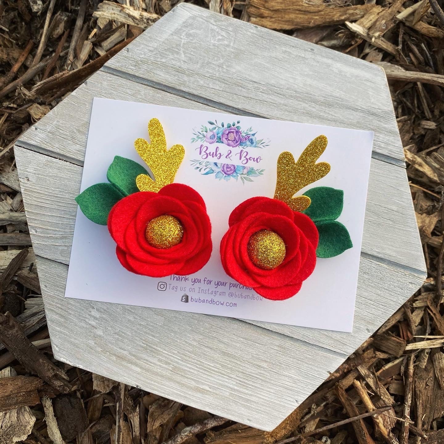Our 'Reindeer Piggy Bows' are made from Unicorn Sparkle chunky glitter fabric and pink glitter felt.
