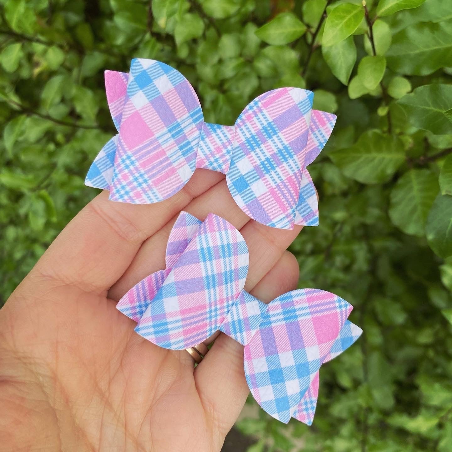 Pink & Blue Plaid Mini Piggy Clips